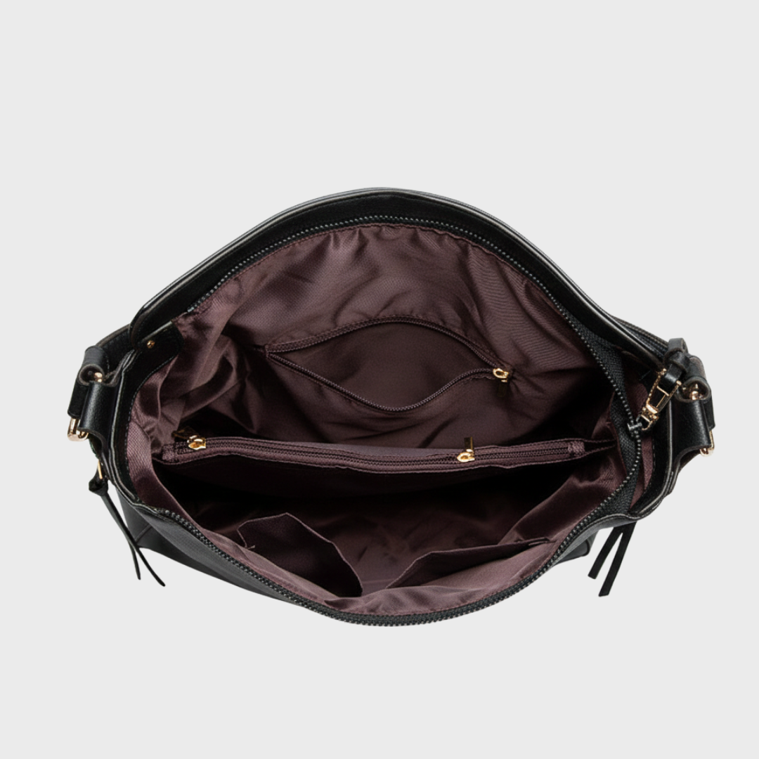 Diseñado para que te muevas tranquila. Aveline incorpora cremallera trasera antirrobo y compartimentos interiores con cierre, manteniendo todo protegido y siempre en su sitio.